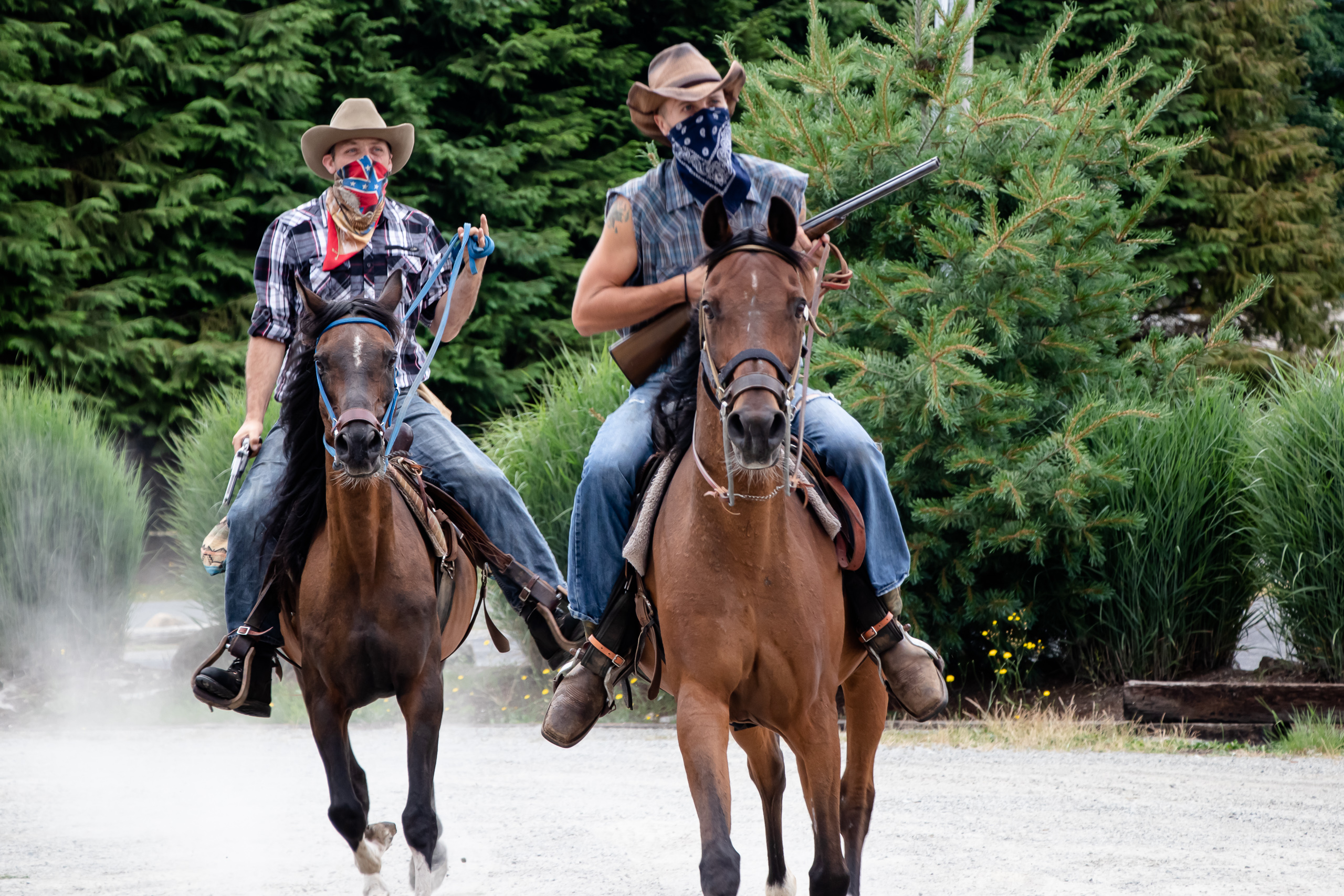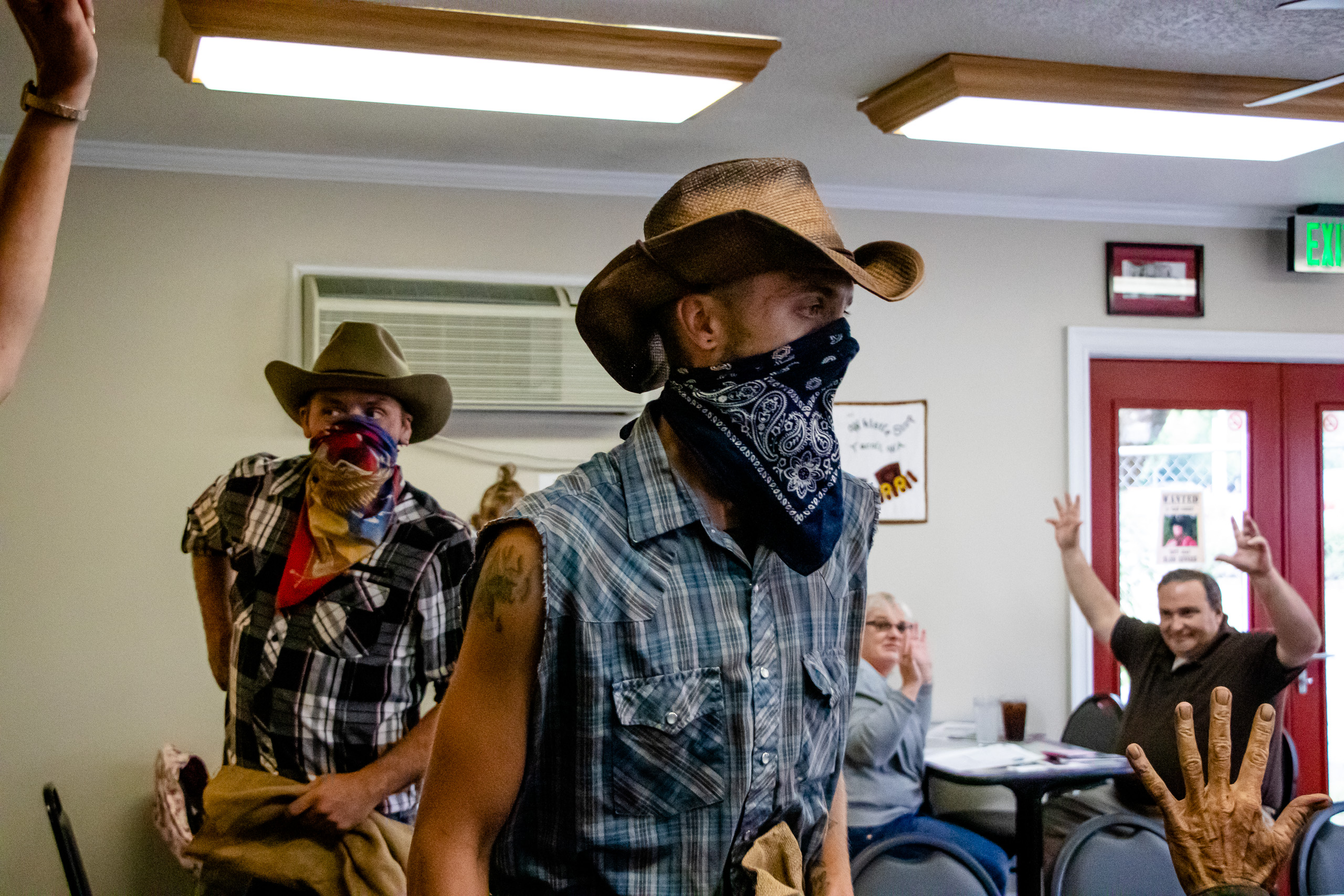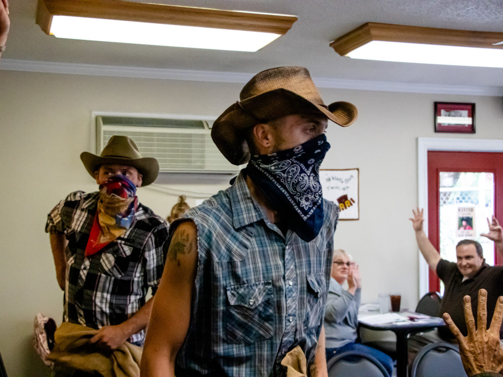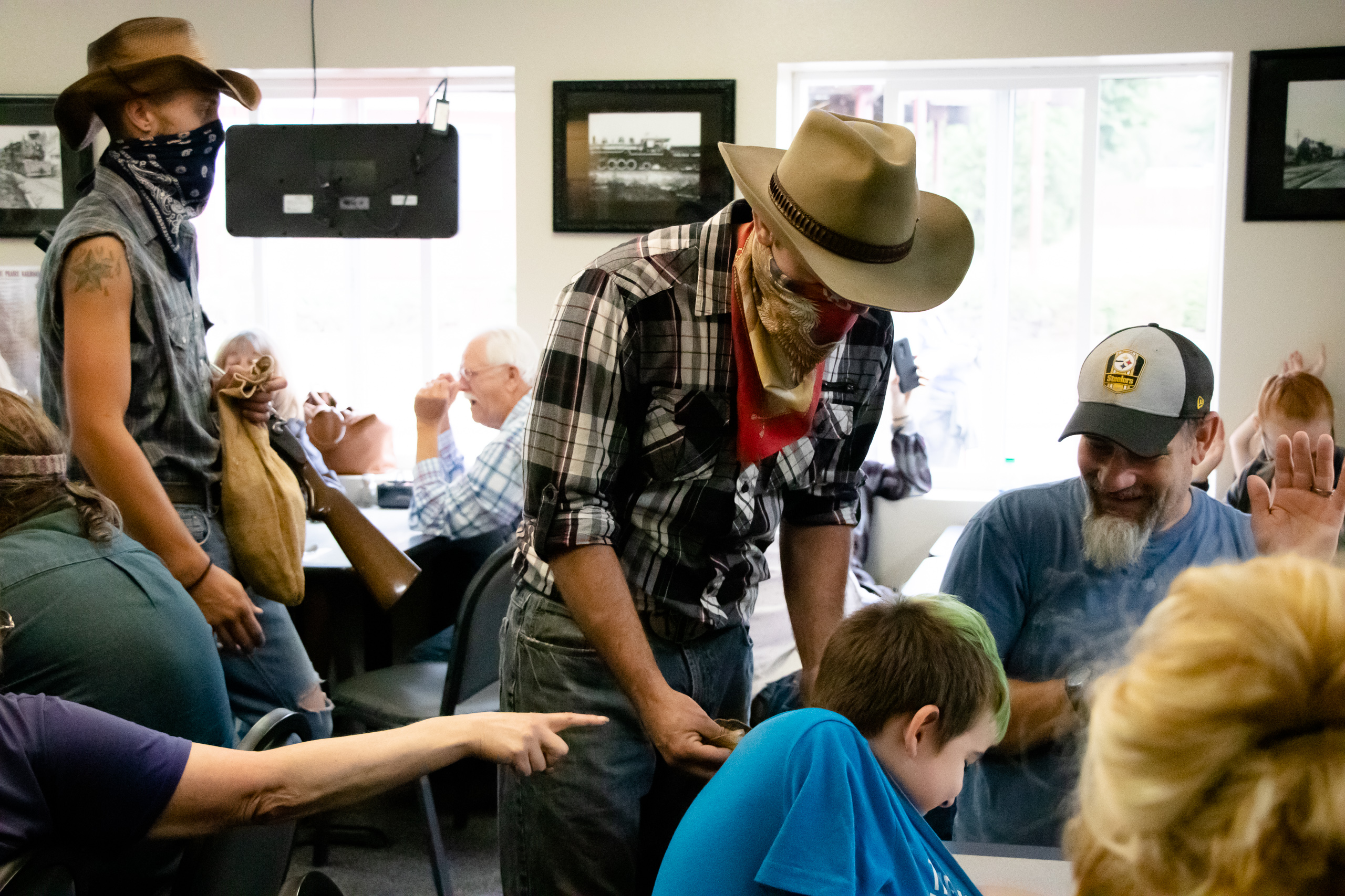 Every year, they stage a train heist – this year, they also held up at gunpoint the Whistle Stop Restaurant!