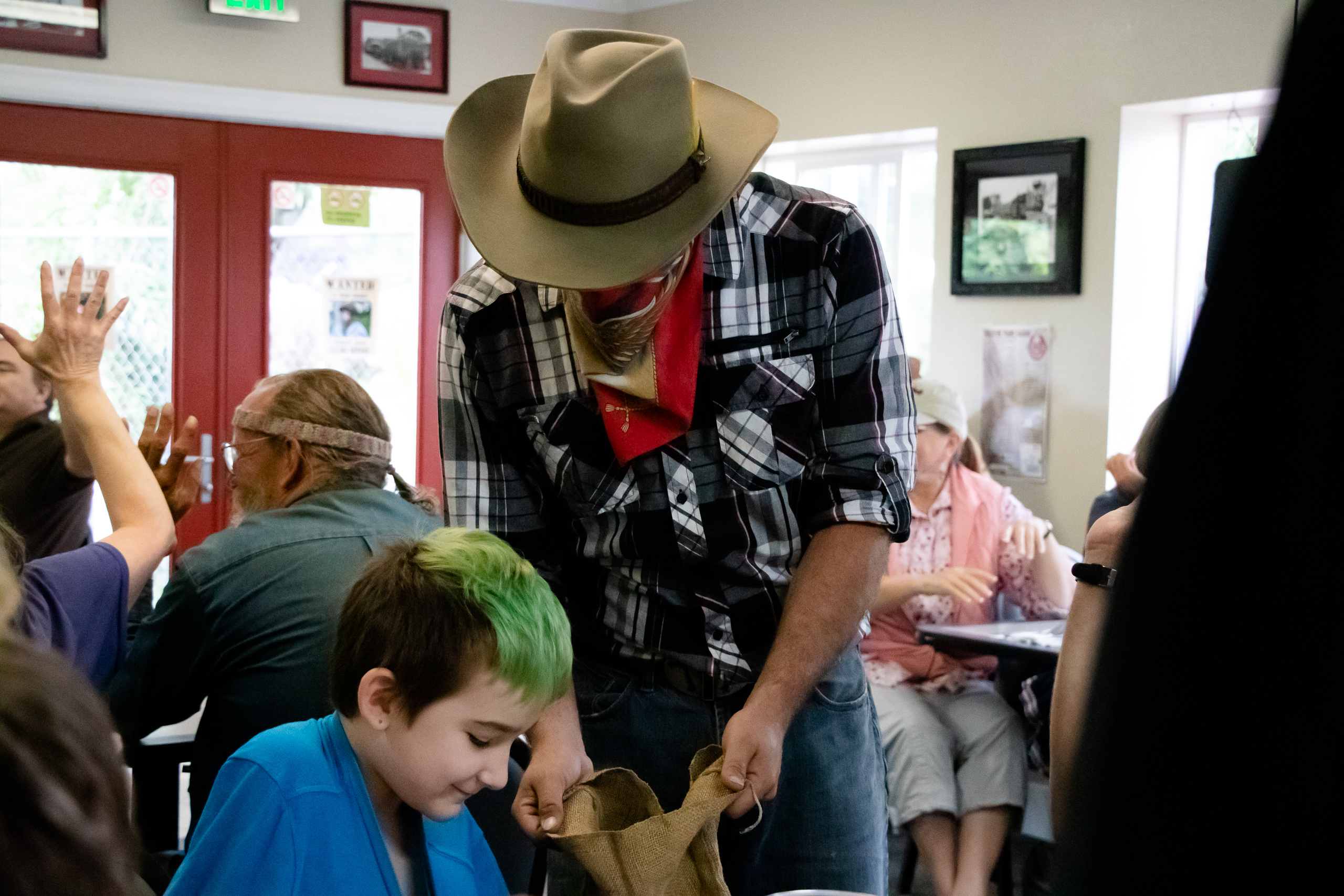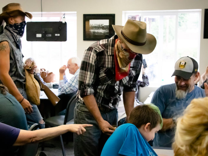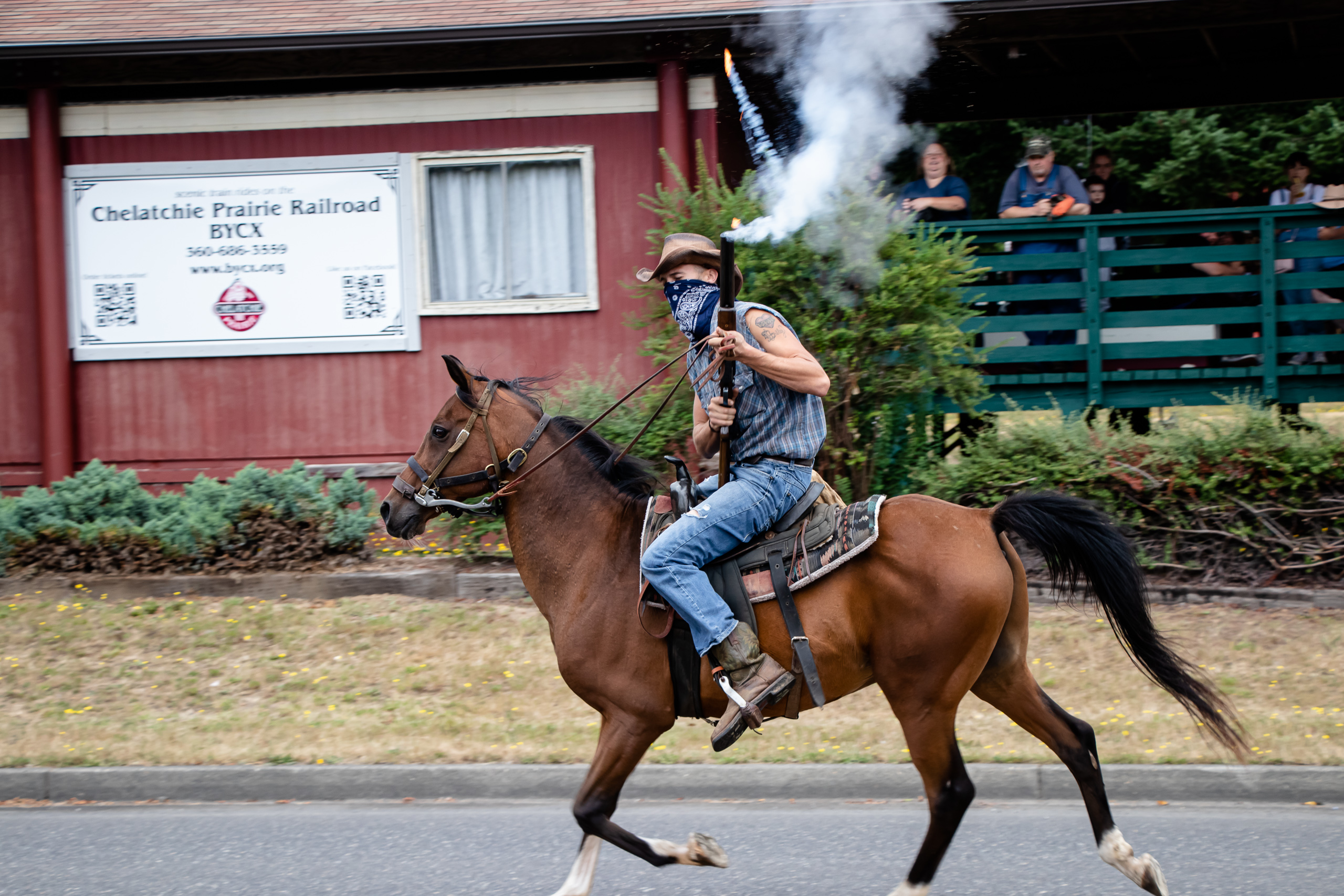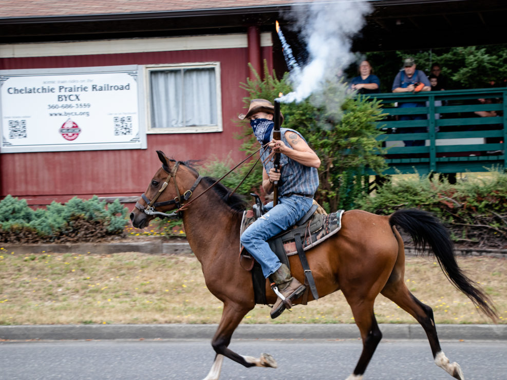 Every year, they stage a train heist – this year, they also held up at gunpoint the Whistle Stop Restaurant!
